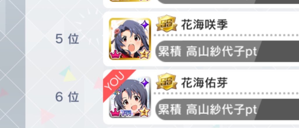 高山紗代子ランキングには早々に「花海咲季」がいることはわかっていたが、いつからか順位の前後を競るような位置関係が続いていた。